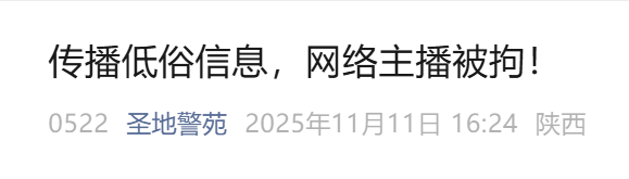 陕西一网络主播被拘留!
